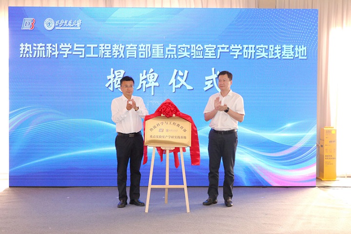 屈治國與李奕為“熱流科學與工程教育部重點實驗室產(chǎn)學研實踐基地”揭牌。