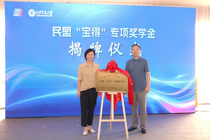 錢晴與奚龍為民盟“寶得”專項獎學金揭牌,突出項目在科研創(chuàng)新、人才培養(yǎng)與社會責任的多維價值。